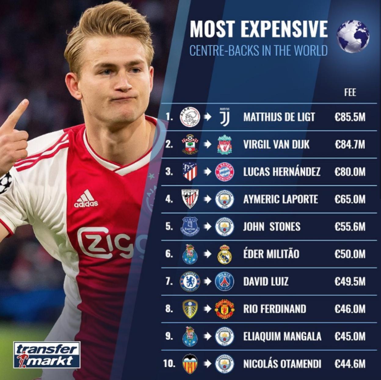 Caughtoffside On Twitter The Most Expensive Centre Backs Of All Time Rio Ferdinand Must Ve Been Some Player Via Transfermarkt